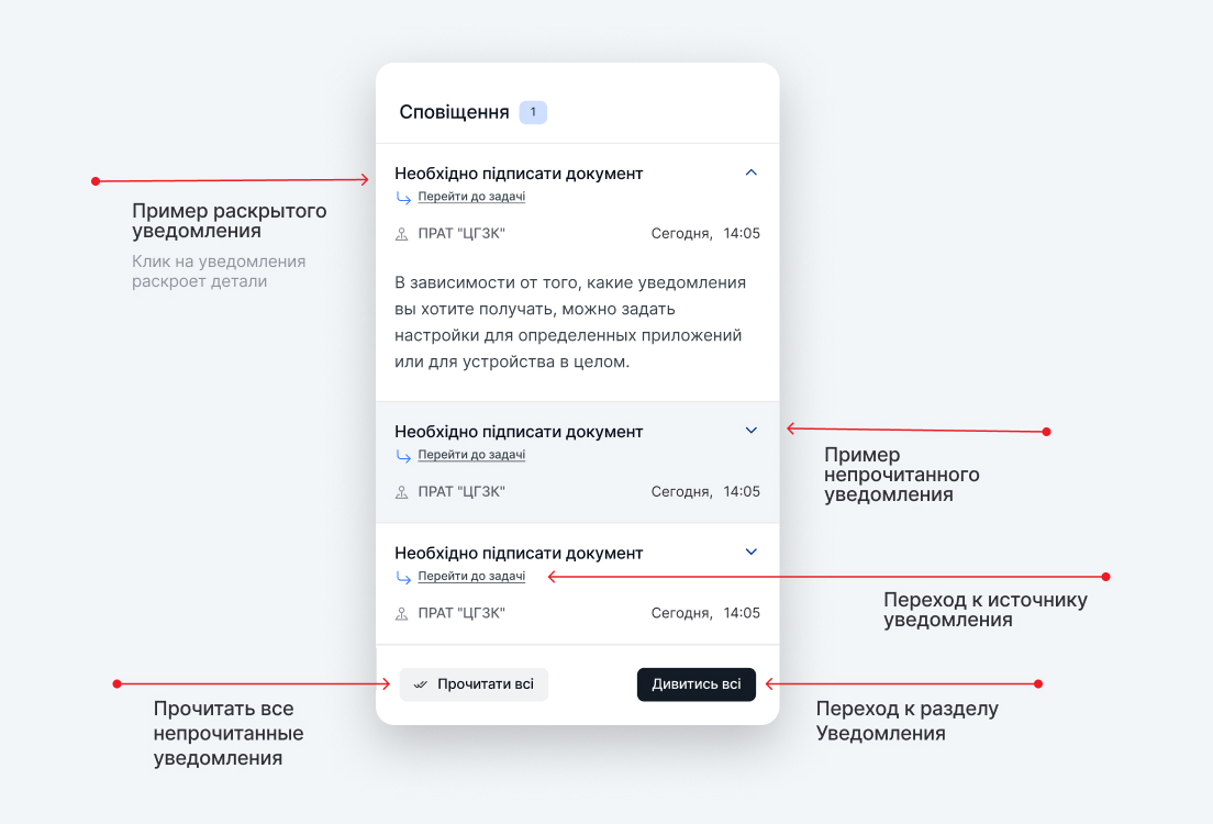 Клик на уведомление раскроет карточку и даст тебе возможность ознакомиться с текстом уведомления.