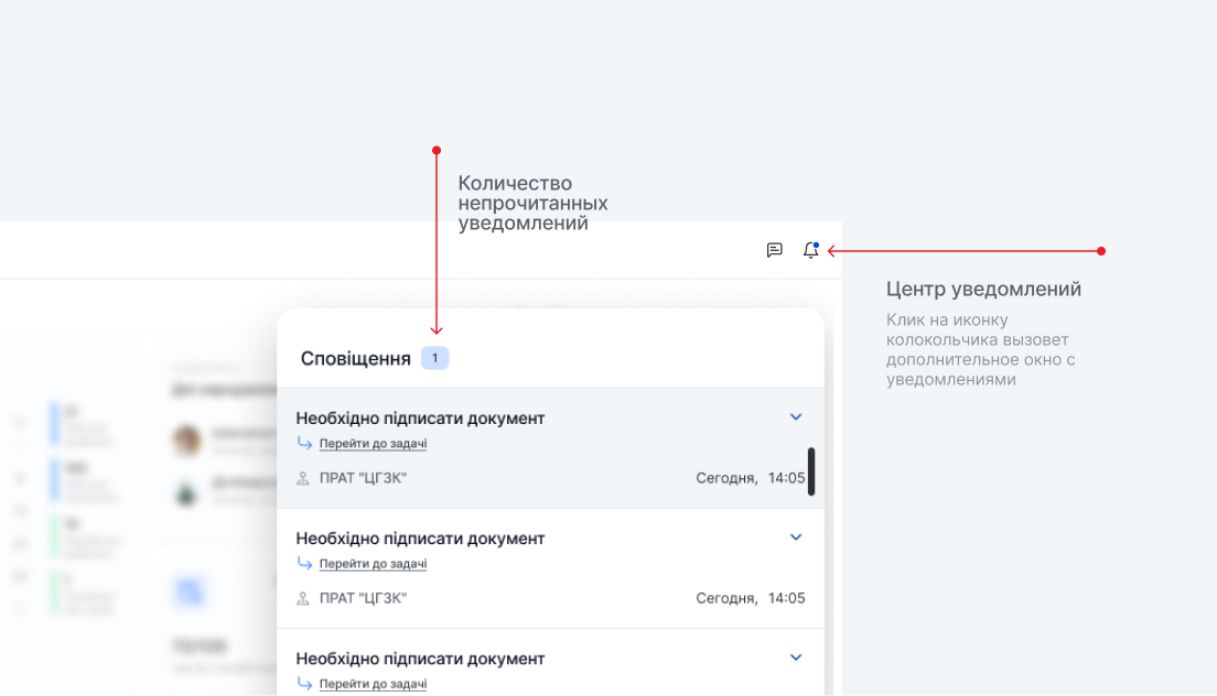Оповещения информируют или напоминают о ключевых событиях или действиях в системе, которые требуют внимания.