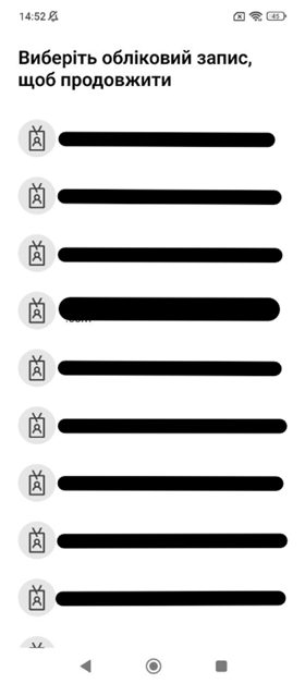 - Тобі запропонують обрати або додати обліковий запис («+» внизу) для авторизації.