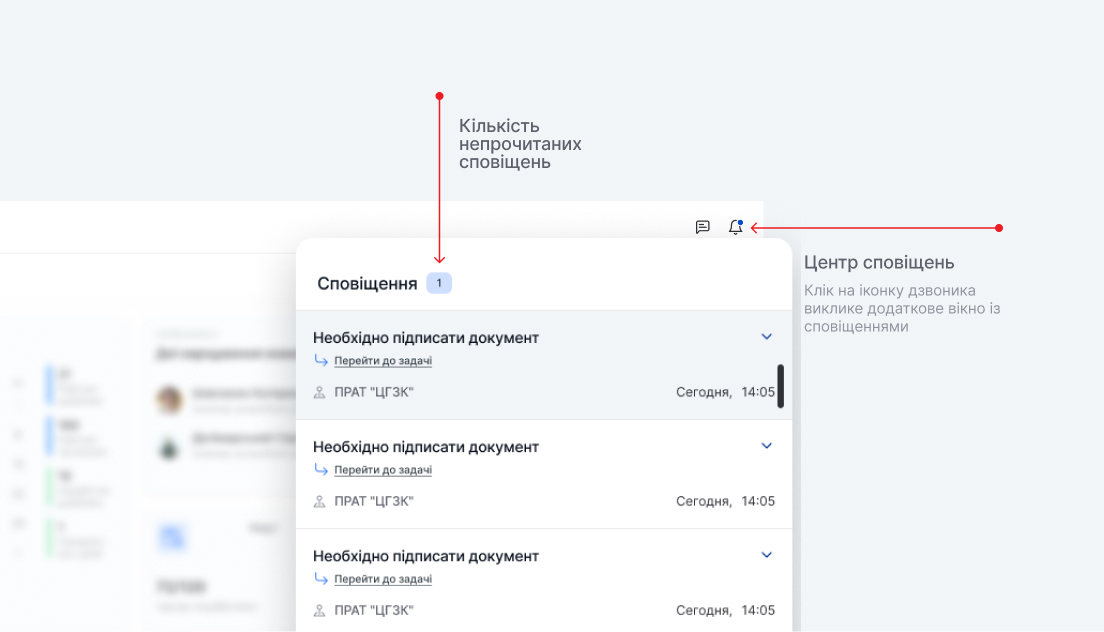 Сповіщення інформують або нагадують про ключові події чи дії в системі, які потребують уваги.