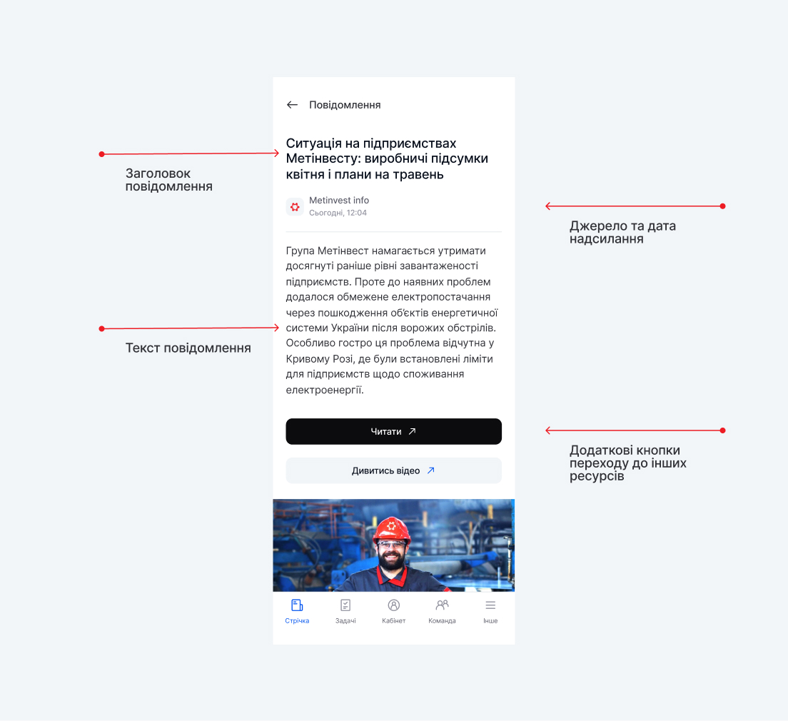 Повідомлення дозволять бути в курсі актуальних корпоративних новин, важливих оголошень та інформації для співробітників.